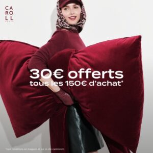 Retour 30€ OFFERTS TOUS LES 150€ D’ACHAT Du 12 décembre 2025 Au 15 décembre 2025. C’est le moment de se faire plaisir dans votre boutique Caroll ! Retour à la liste